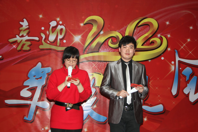 整場團拜會高潮迭起,精彩紛呈,不僅意在迎新年,更是展現北大荒米業(yè)人的精神風采。晚會由牟校晨、王任蕾兩位同事主持,他們的主持贏得了大家的贊譽,整臺團拜會始終洋溢在喜慶、歡樂、祥和的氣氛中!侗娙藙潣_大船》、《我的未來不是夢》等歡快、喜慶,勵志的歌曲感染著每一位觀眾;游戲《比劃猜猜》,形式獨特,表演生動;由我公司獨創(chuàng)的節(jié)目《公司經營管理知識競答》用激勵的方式強化著員工的公司理念知識。小伙們合唱一首《兄弟干杯》,既充滿朝氣,又讓人們感受到那份男兒的豪爽;對唱歌曲《為了誰》溫馨感人;歌曲獨唱歌曲《好運來》、《有沒有一首歌會讓你想起我》、《傳奇》、《最初的夢想》、《窗外》、......無不展現著多才多藝的地勘人的風采。團拜會在領導班子的合唱《眾人劃槳開大船》中達到高潮。在激昂、真情的歌聲中,我們感受到了公司領導與員工心與心的碰撞,情與情的交匯,我們懷揣著同一個夢想,一同鑄就米業(yè)人的輝煌。在領導班子的帶領下,大米事業(yè)部、財務中心、糧油貿易公司等部門紛紛上臺演唱了歌曲。