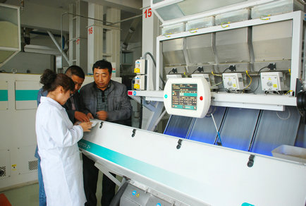 今年六月中旬,在公司總部的協(xié)調(diào)下,衛(wèi)星制米公司從八五九制米廠調(diào)換一臺(tái)帶紅外功能的色選機(jī)。改造過程中,該公司總經(jīng)理劉燕華組織米廠技術(shù)骨干加班加點(diǎn)自己安裝,在改裝色選機(jī)的同時(shí)又對(duì)去石機(jī)風(fēng)網(wǎng)進(jìn)行了改造,將過去兩臺(tái)去石機(jī)共用一臺(tái)風(fēng)機(jī)改為每臺(tái)去石機(jī)對(duì)應(yīng)一臺(tái)風(fēng)機(jī),有效提高大米質(zhì)量和標(biāo)準(zhǔn)。
