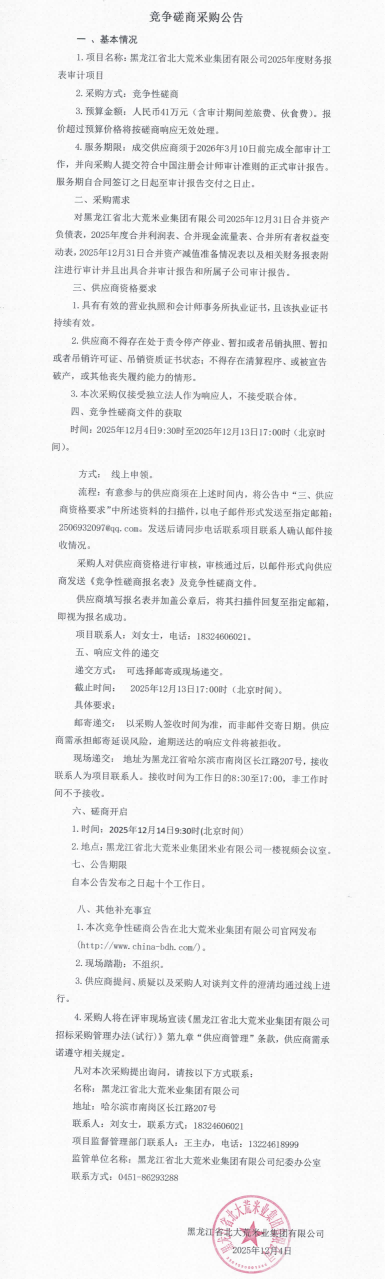 米業(yè)集團(tuán)2025年度財(cái)務(wù)報(bào)告審計(jì)項(xiàng)目爭(zhēng)磋商采購公告