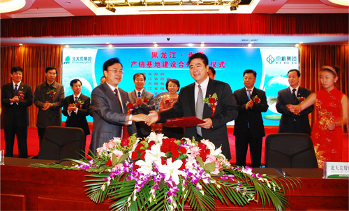 “金秋三江舞豐收,產(chǎn)銷對(duì)接亮碩果”。9月20日,北大荒股份有限公司與北京糧食集團(tuán)有限責(zé)任公司在農(nóng)墾建三江舉行戰(zhàn)略框架協(xié)議簽約儀式。這標(biāo)志著為滿足市場(chǎng)供需平衡,黑龍江和北京兩省市以龍頭企業(yè)為紐帶,建設(shè)糧食產(chǎn)銷基地項(xiàng)目正式啟動(dòng)。